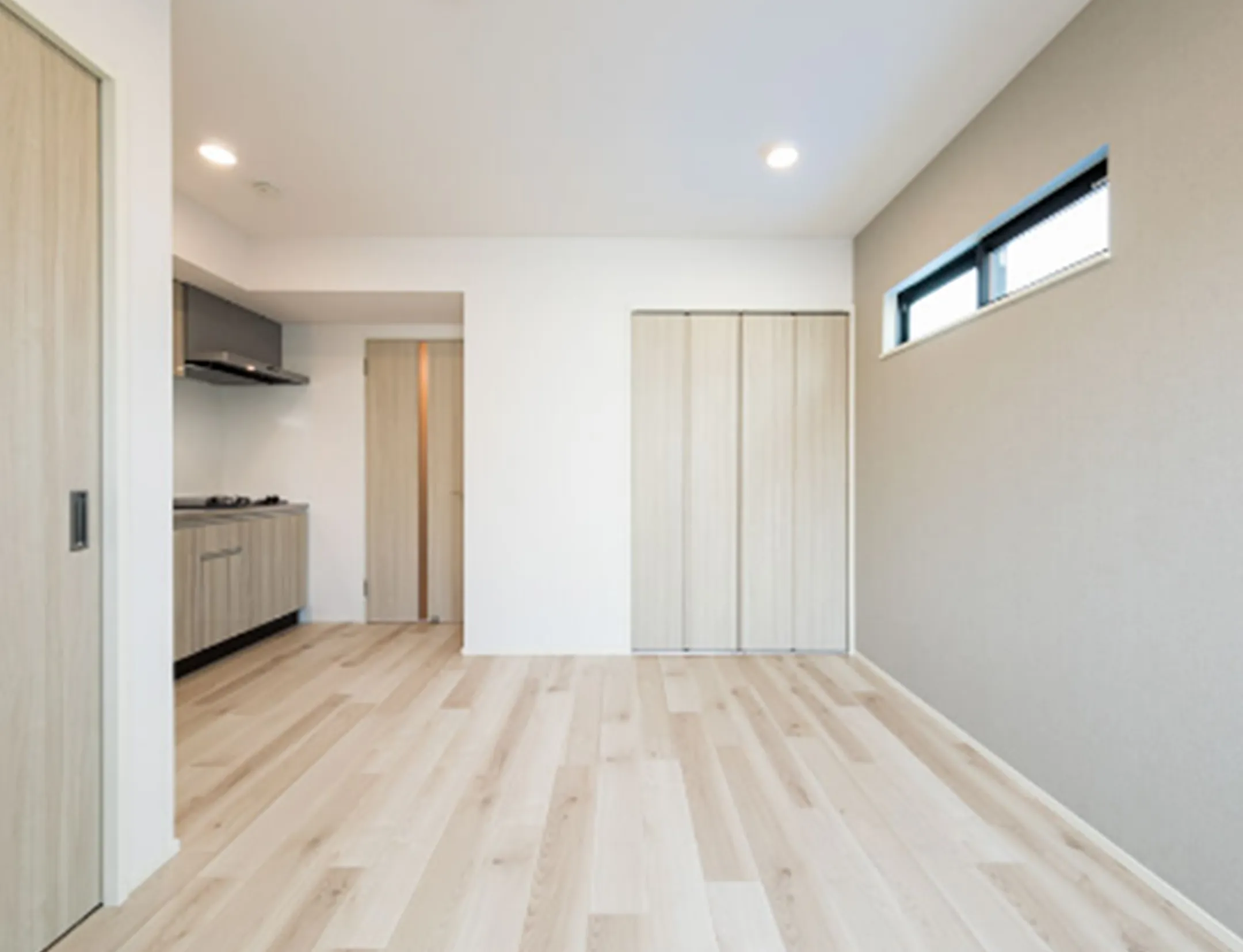 単⾝者に⼈気の30㎡前後の1LDKの間取りを採⽤。また、アクセントクロスを標準仕様にし⼊居率UPを⽬指します。